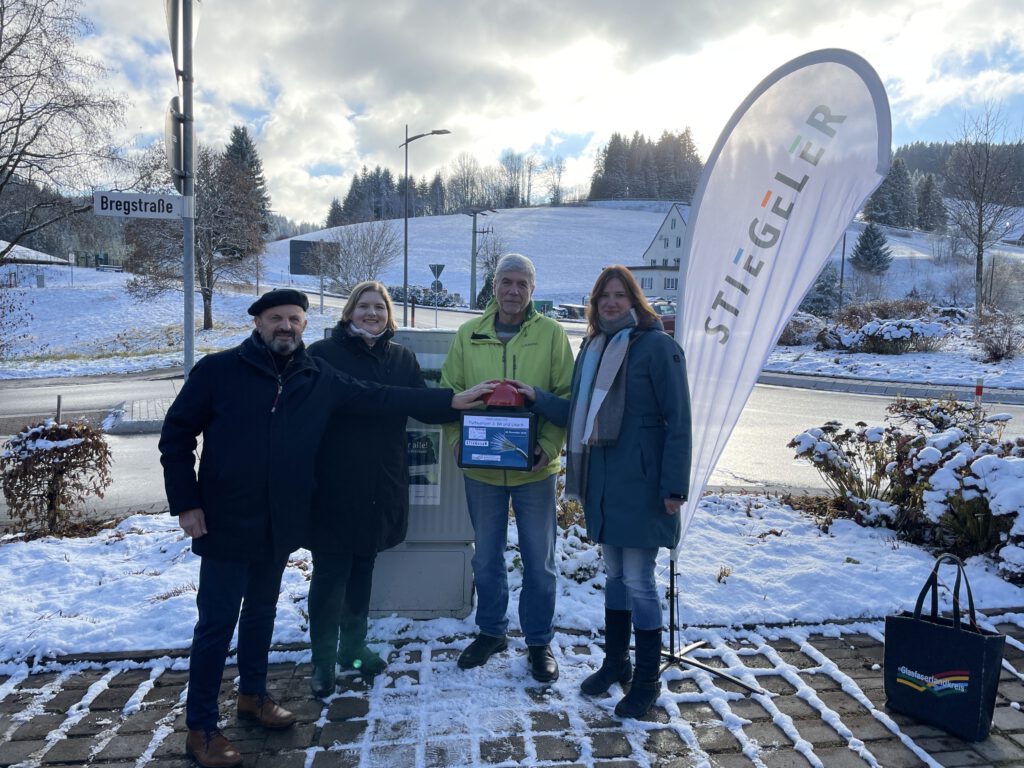 Zur offiziellen Inbetriebnahme konnte Bürgermeister Josef Herdner den Breitbandkoordinatoren der Stadt Furtwangen, Rainer Jung, Ingrid Kaplitz vom Netzbetreiber Stiegeler und Katrin Merklinger, Pressesprecherin des Zweckverbands Breitbandversorgung Schwarzwald-Baar,
